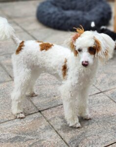 Der letzte im Bunde unserer Pudel Bande ist „Chess“. Er ist ein Zwergpudel mit 31cm und muss noch seine Zuchttauglichkeitsprüfung bestehen. Er ist im August 2021 geboren. Auch Chess ist ein Harlekin.